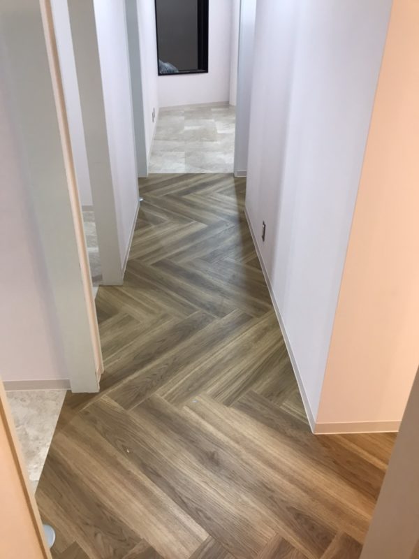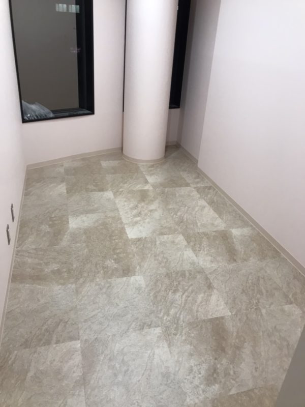 今回は、梅田にて塩ビタイル・ヘリンボーン・CFシート貼り工事を行いましたので、ご紹介します。